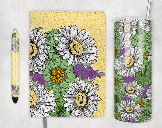 Daisies and Lilacs Sublimation Template Set [Pen Wrap, Journal, Tumbler]