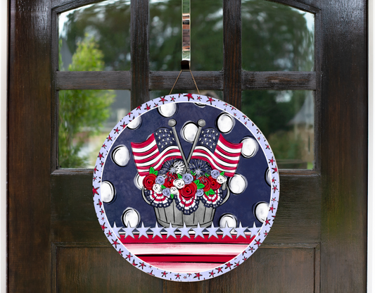 PATRIOTIC FLAGS AND FLOWERS DOOR HANGER