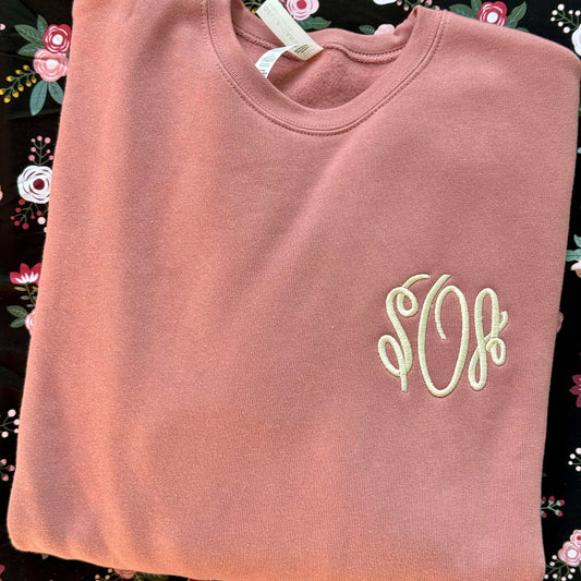 Custom Monogram Sweatshirt – Personalized Left Chest Embroidery – Boutique Cozy Style