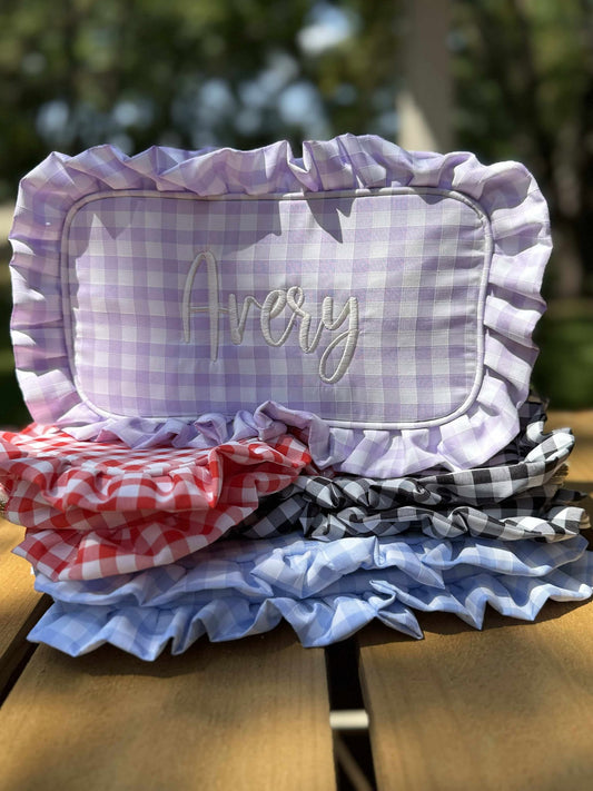 Gingham Frilly Makeup Bags, Makeup Bags, Summer Bag: Purple