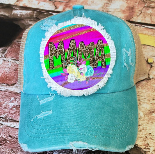 Mama Neon Flowers Hat Patch Set [includes circle, square and oval]