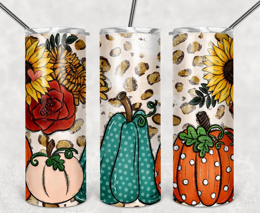 Pumpkin and Flowers with Leopard Wrap 20 oz [TUMBLER WRAP]