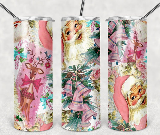 Pink Christmas Santa Tumbler Wrap 20 oz [TUMBLER WRAP]