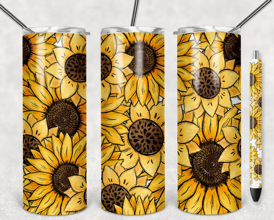 Sunflower Tumbler Wrap 20 oz with BONUS Pen Wrap [TUMBLER WRAP]