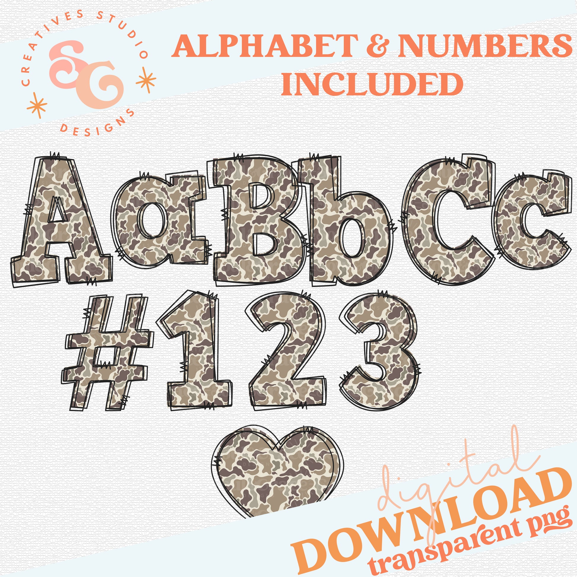 CAMO DOODLE ALPHA - NUMBERS INCLUDED