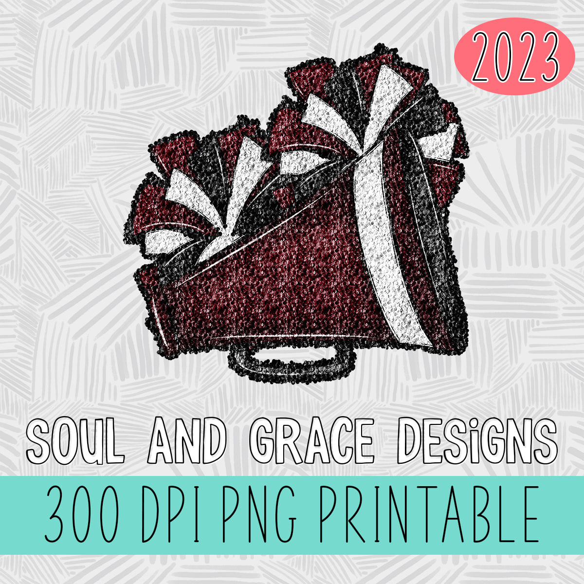 Cheer Megaphone and Poms Faux Sequin - Maroon