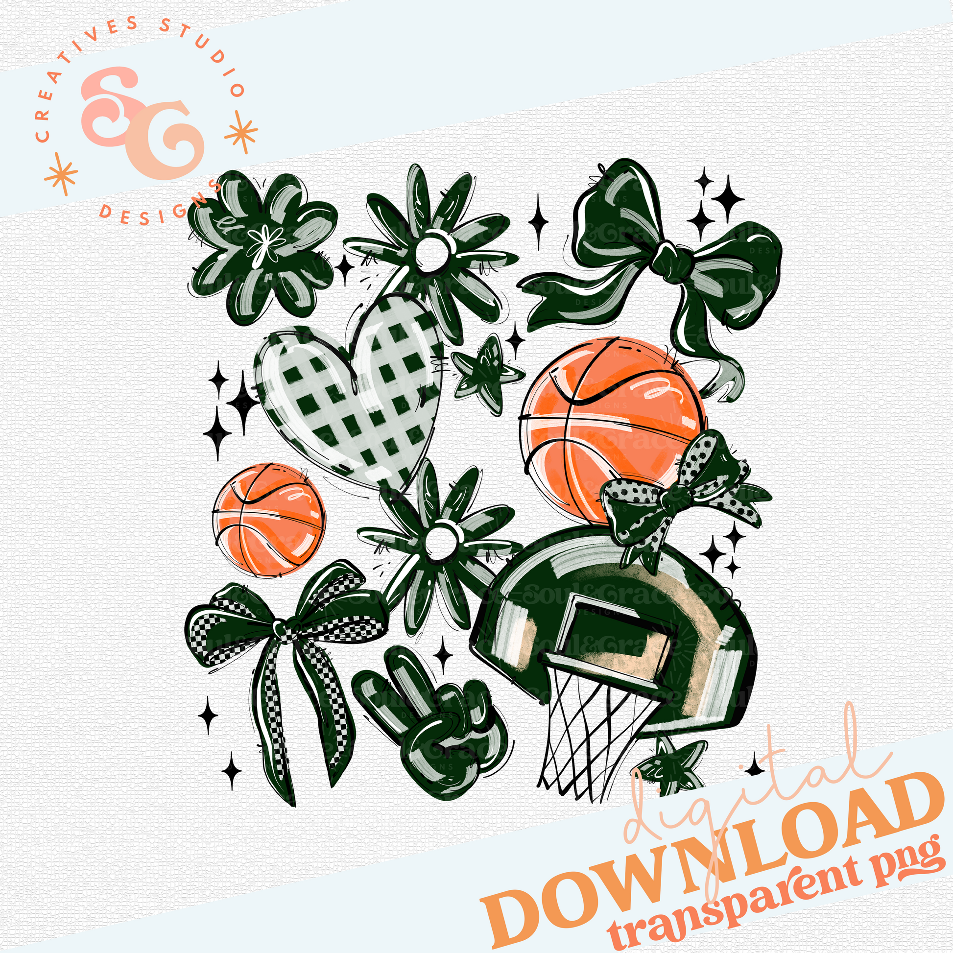 DARK GREEN PLAY BALL BASKETBALL COLLAGE