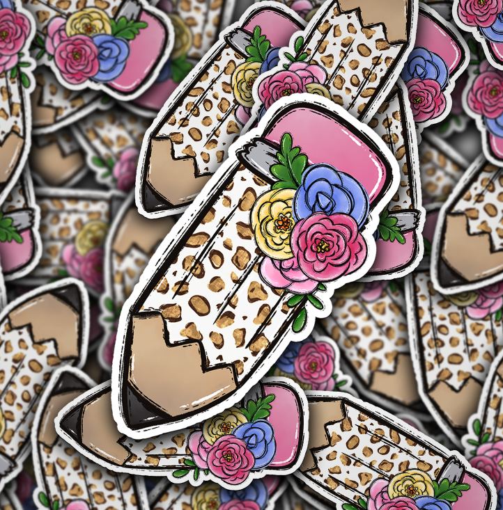 Leopard Pencil with Flowers [Print & Cut Sticker]